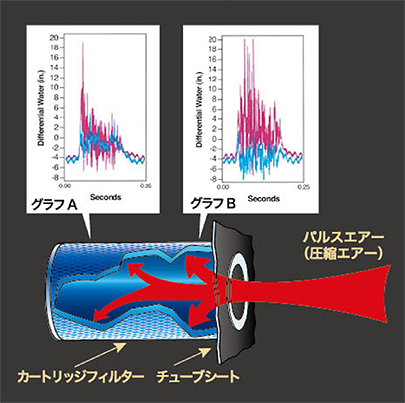 パルスクリーニング技術エキストラライフ(ExtraLife™)フィルタークリーニングシステムはコンピュータでモデル化された独自のパルスクリーニング技術を利用してフィルターの表面からダストを”払い落とす”ことにより、補修効率を高めるとともにフィルターの寿命を伸ばします。
